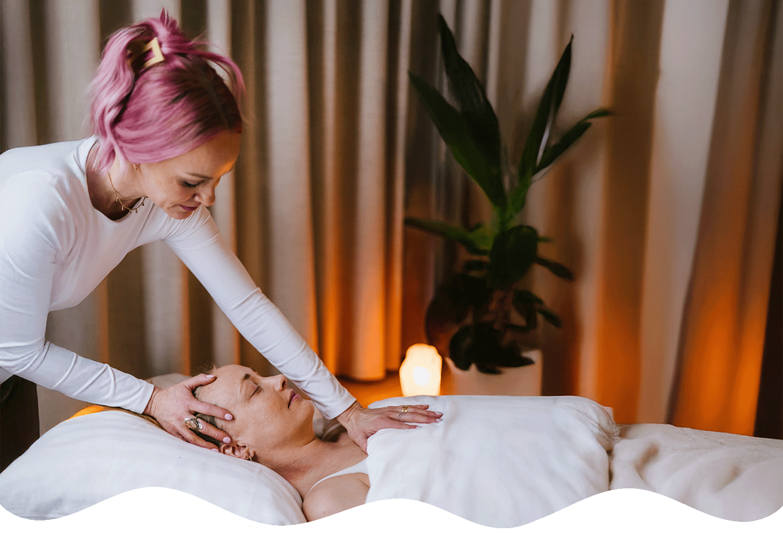 Herefter guider jeg dig nænsomt ned i kroppen, og vi begynder behandlingen.